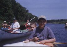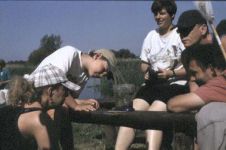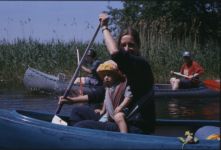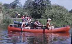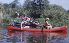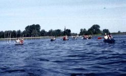 Zum letzten Mal wurden die Zelte verschnürt. Ohne Gepäck ging es über den See nach Gravelotte. Hier wanderten wir ein Stück auf dem dortigen Naturlehrpfad. Anschließend spendierten Jörg und Diana noch jedem einen Eisbecher. Nach einer kurzen Badepause noch schnell ein Blutegel für Eriks mobiles Miniaquarium eingefangen, und ab ging es zurück nach Verchen. Beinahe hätte der inzwischen ausgebrochene Blutegel das Kanu der Familie Schulze in Panik und damit zum Kentern gebracht, aber die Besatzung hatte die Lage unter Kontrolle.