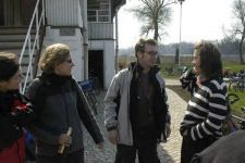 Am nächsten Rastplatz in Grimme erkundigte sich der dortige Pfarrer in Rente: Was hat man Ihnen denn in Hundeluft erzählt - wo der Ortsname herkommt? Auf unsere siegessicher abgegebene Erklärung kam die Erwiderung: Das ist ja total falsch. Hunde kommt von Hinte und das heißt auf Flärrdnger Platt Hirschkuh. Der Lauf der Hirschkuh also. Wie auch immer - nach einem gutgemeinten, aber etwas lang geratenen Vortrag über die Besiedlungsgeschichte des Flämings bei strömenden Regen und klirrender Kälte gab es dann das heiß ersehnte Mittagessen in Medewitz. Der musikalische Wirt gab noch eine Kostprobe seines Könnens auf dem Akkordeon. Gut gelaunt und schunkelnd vergaßen wir die Zeit, so dass apricustypisch nach dem Mittagessen die Raserei Richtung Dessau losging. Wer bei diesem Rallye - Abschlusstraining die Pole-Position erkämpft hat, wissen wir leider nicht mehr.
