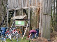 Wie immer begannen die Radwandertage mit der Weitbeteiligung am Anreisetag, d.h. wer die meisten Kilometer mit dem Fahrrad zurücklegt und bis spätestens 17.30 Uhr am Zielpunkt eintrifft. Ziel war dieses Jahr Drei Eichen, eine mitten im Wald gelegenen Herberge nahe Buckow, mit ökologischem Anspruch. Bis 17.30 Uhr fanden sich dann auch alle ca. 40 Teilnehmer/-innen mehr oder weniger erschöpft am Orte ein und erhielten erst einmal eine Führung durch das Gelände mit Tipidorf, Backofen, Garten, Solaranlage usw. Nach dem Abendbrot wurden die Radwandertage offiziell eröffnet und der Abend klang am Lagerfeuer aus.