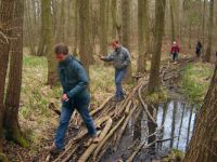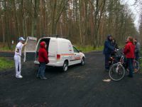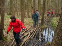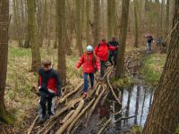 Am Ostersamstag gab es wie immer die kleine und große geführte Radwanderung. Die meisten Teilnehmer/-innen wählten die große Tour und fuhren durch das Herz der Märkischen Schweiz – ursprünglich erhaltenen Wald und dem Fluss Stopper, aber auch jener Gegend mit noch heute sichtbaren Auswirkungen der Stürme des Jahres 2003. Nach kurzem Halt in Buckow ging es weiter entlang am Ostufer des Schermützelsees, dem größten der fünf eiszeitlichen Seen von Buckow. Weiter fuhren wir bis Garzau mit Ökohof und Feldsteinkirche und zum Ursprung des Flusses Stopper im Roten Luch – einem trockengelegten Niedermoor. Die Stopper entspringt dort und fließt dann kurioserweise in zwei Richtungen: ein Teil über die Oder in die Ostsee und ein Teil über Spree und Elbe in die Nordsee. Auf der nördlichen Route ging es zurück Richtung Schermützelsee, den wir nun, auf dem Panoramaweg, von oben sehen konnten. Nach dem Mittagessen fuhr die große Tour weiter in Richtung Sophienfließ und Wurzelfichte (mit üppiger freigelegter Wurzel), die allerdings nach 160 Jahren und ca. 35 Metern Höhe Opfer des Sturmtiefs Kyrill