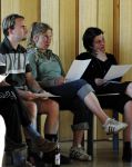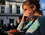 Wir waren über 30 Leute: Familien, Singles, Doubleincome. Am Sonnabend gab es wie immer zwei Touren, die kleine direkt um den Schaarmützelsee herum und eine längere Tour, die mit 60 km aber ziemlich kurz war. Mittags gab es auf der großen Tour ganz viel Fleisch, z.B. Buten, wie uns der sächsische Wirt mitteilte. Das sorgte anfangs für Verwirrung, denn wer kennt schon Buten? Wie wenig bildungsinteressiert die Teilnehmer der CRWT sind, stellte sich im Schlosshof (eines Schlosses) heraus. Ausnahmslos alle Tourteilnehmer entschieden sich für das Kondittern im Schlosscafé und gegen die hochinteressante Ausstellung zu diversen Themen (irgend etwas mit Eiszeitmenschen) im Schloss. Überhaupt wurde während der Radwandertage wieder ausgiebig gegessen und kondittert. Erwähnen möchte ich das hervorragende Fischrestaurant (fangfrischer Fisch) auf dem Rückweg von Bad Saarow nach KW, unerwähnt lassen möchte ich hingegen das Restaurant Zur Gänsekeule (oder so ähnlich), in das wir nach der Rallye einkehrten. Die Rallye war anstrengend und der Plan, möglichst viele Punkte abzufahren und gleichzeitig möglichst viel schöne Natur anzugucken, nicht wirklich zu realisieren. Aber die Rallye war echt profimäßig organisiert und toll und es gab auch Gewinner und Gewinnerinnen, im Großen und Ganzen die, die immer gewinnen.