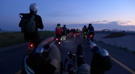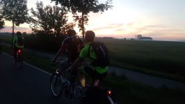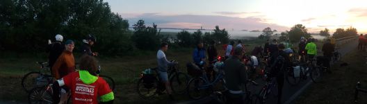 Der ADFC Berlin hatte in diesem Jahr unser Angebot der Zubringertour ins Programm genommen und auf Flyer und Homepage veröffentlicht… und je näher der Tag rückte, desto mehr Leute meldeten sich bei Micha. Alle verrückt genug, um eine ~180km lange Fahrradtour - teilweise durch die Nacht - auf sich zu nehmen. Als wir in Treuenbrietzen zum Trupp dazustießen, hatten diese 40 Enthusiasten (auf 39 Fahrrädern) bereits über 90km geschafft und lagen voll im Zeitplan. Für einen Bericht über die komplette Tour möchte ich auf den Eintrag im Blog eines Teilnehmers verweisen ("Cycle the World"-Blog).